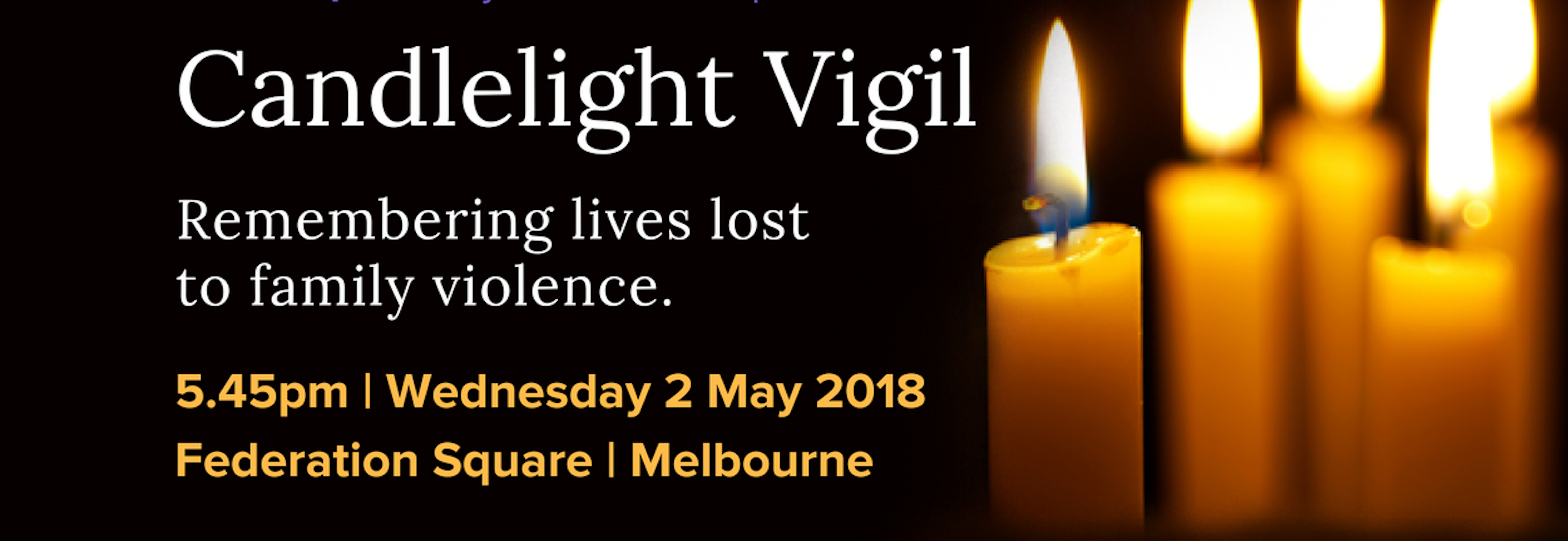 If you would like to honour a family member, friend, yourself or anyone else who has been lost to – or lived through – family violence, you can do so with a personalised Candle of Hope, which will be created and placed on stage during the 2018 Candlelight Vigil. Dedicate a Candle of Hope here: https://candlesofhope.gofundraise.com.au/